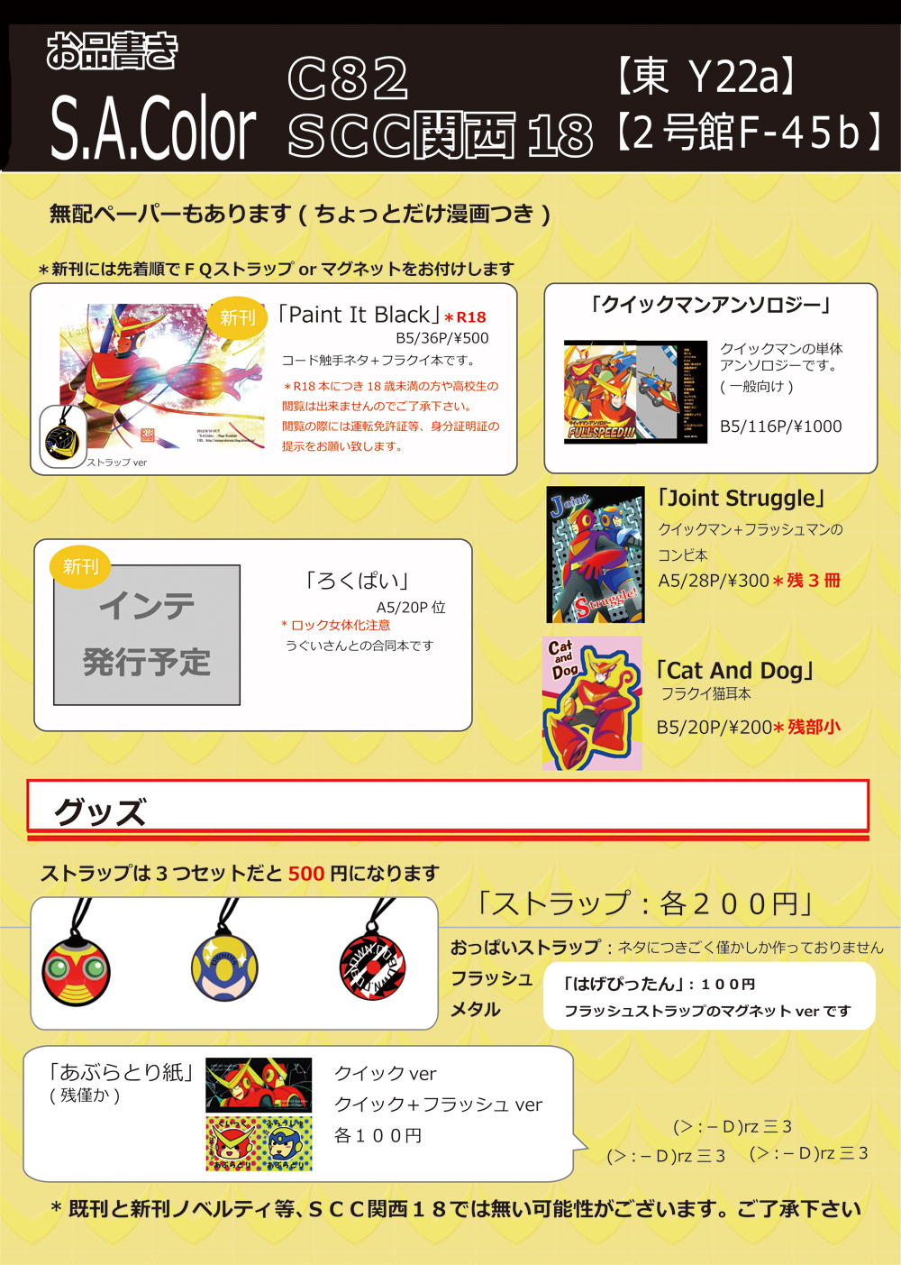 一日目 東Y-22a「S.A.Color」にて既刊のFQ本とかコンビ本やクイックアンソロも